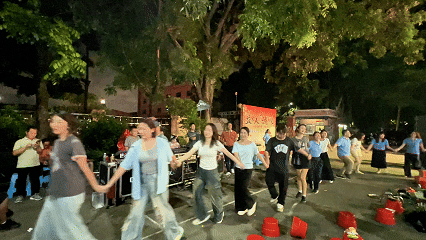 火車首尾相接,瞬間化作一個溫暖的圓環(huán)。熟悉的旋律響起,益誠人不分彼此,手拉著手,隨著節(jié)奏一同左右搖擺。這一刻,歡聲鼎沸,溫情涌動,團結(jié)與快樂的氣氛在圓月下升至頂點。