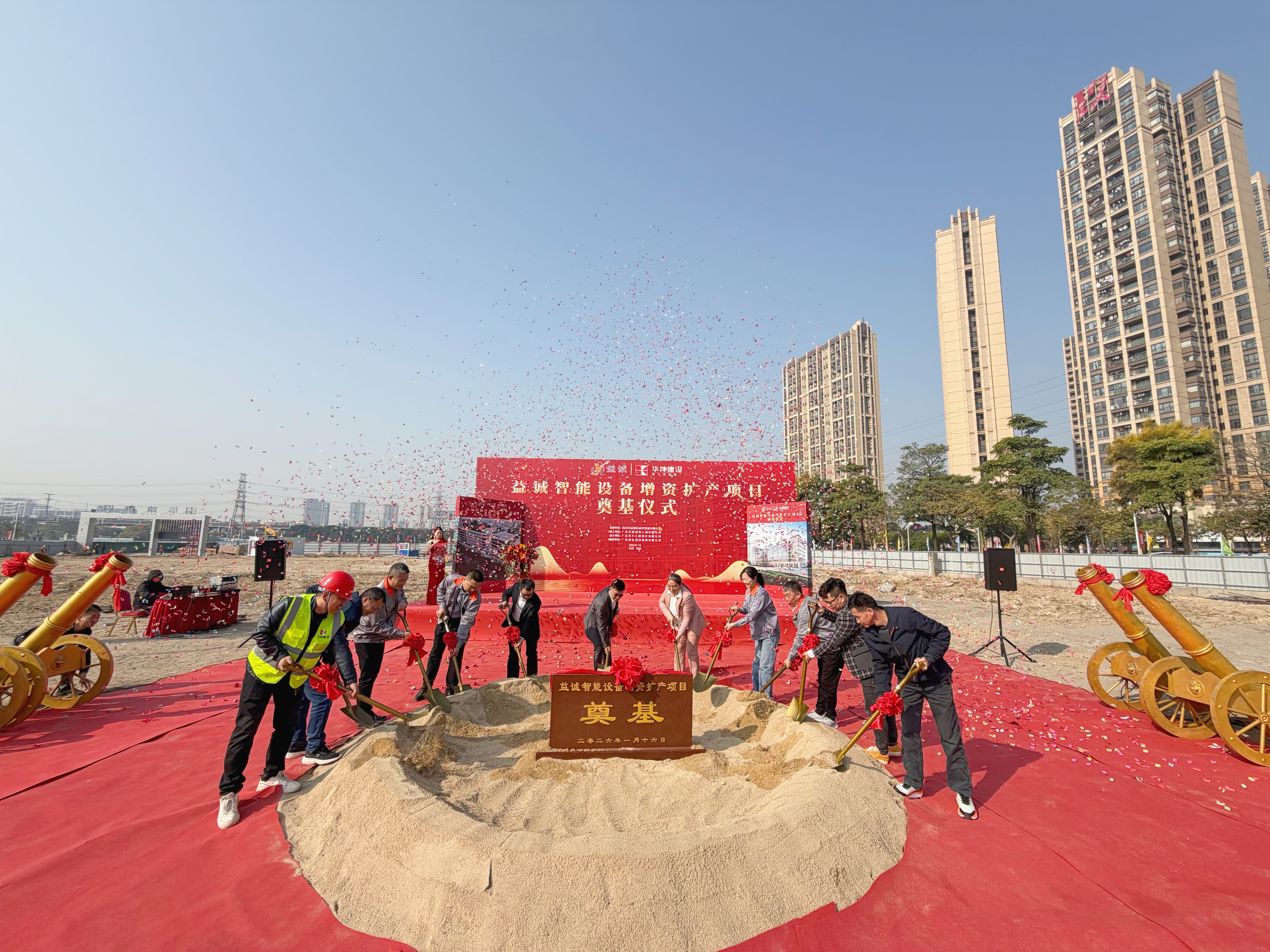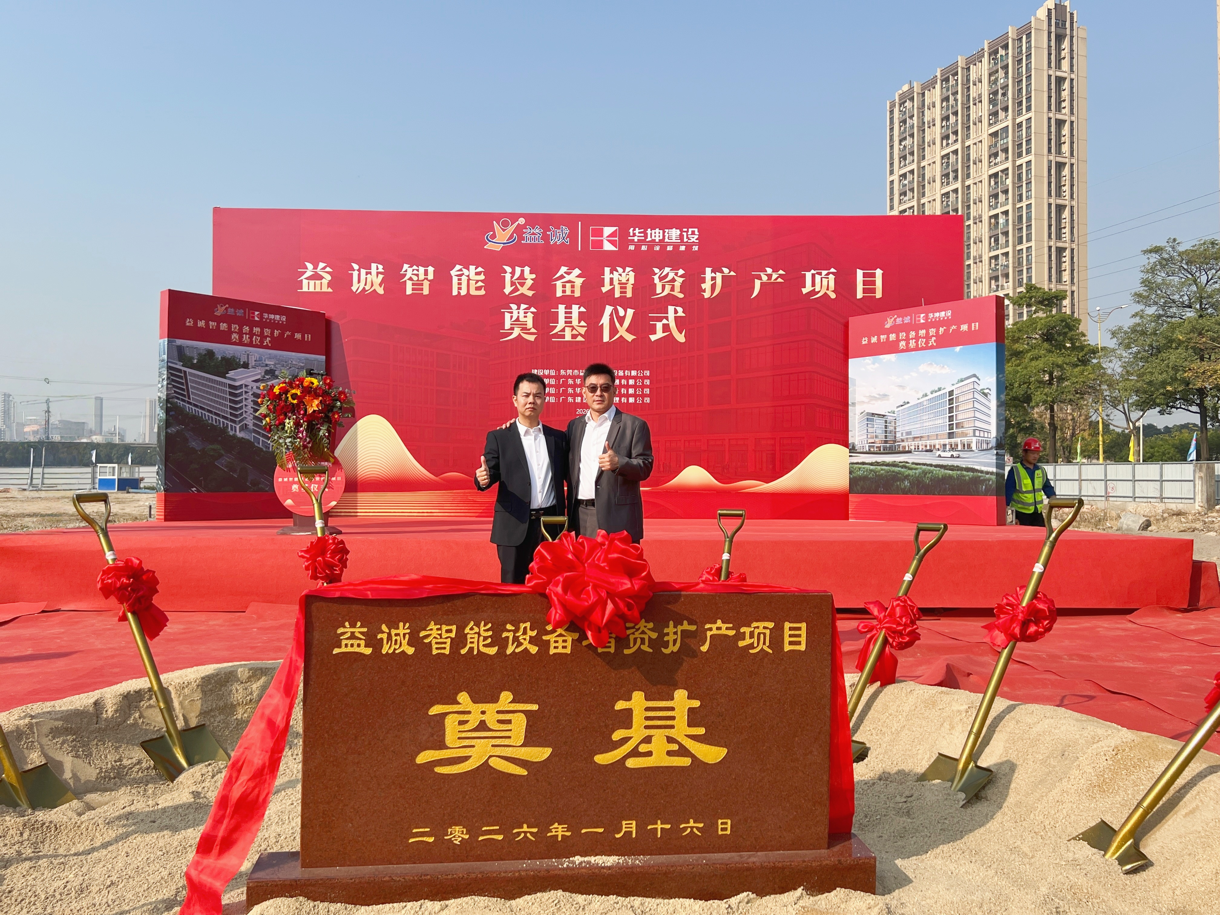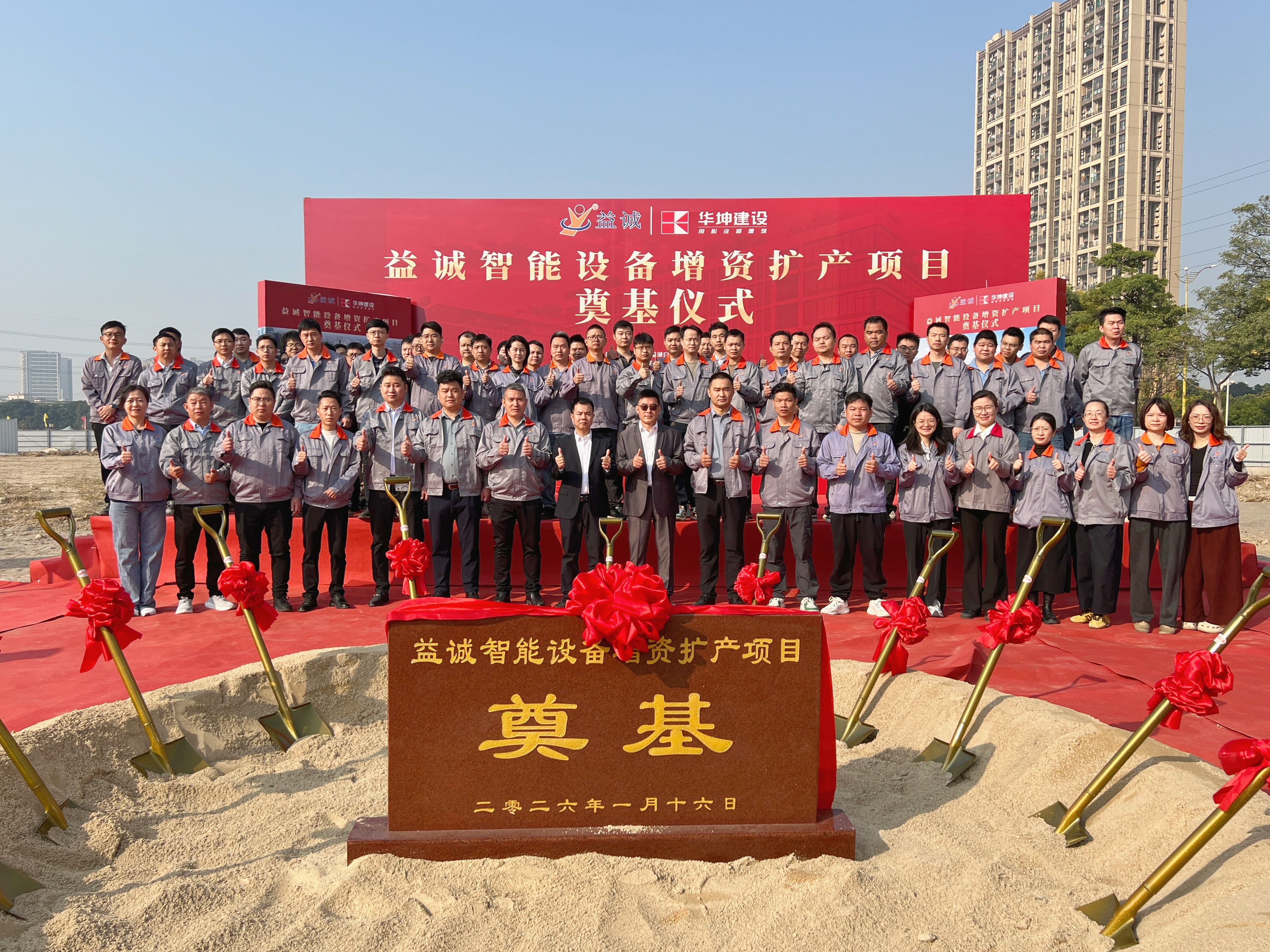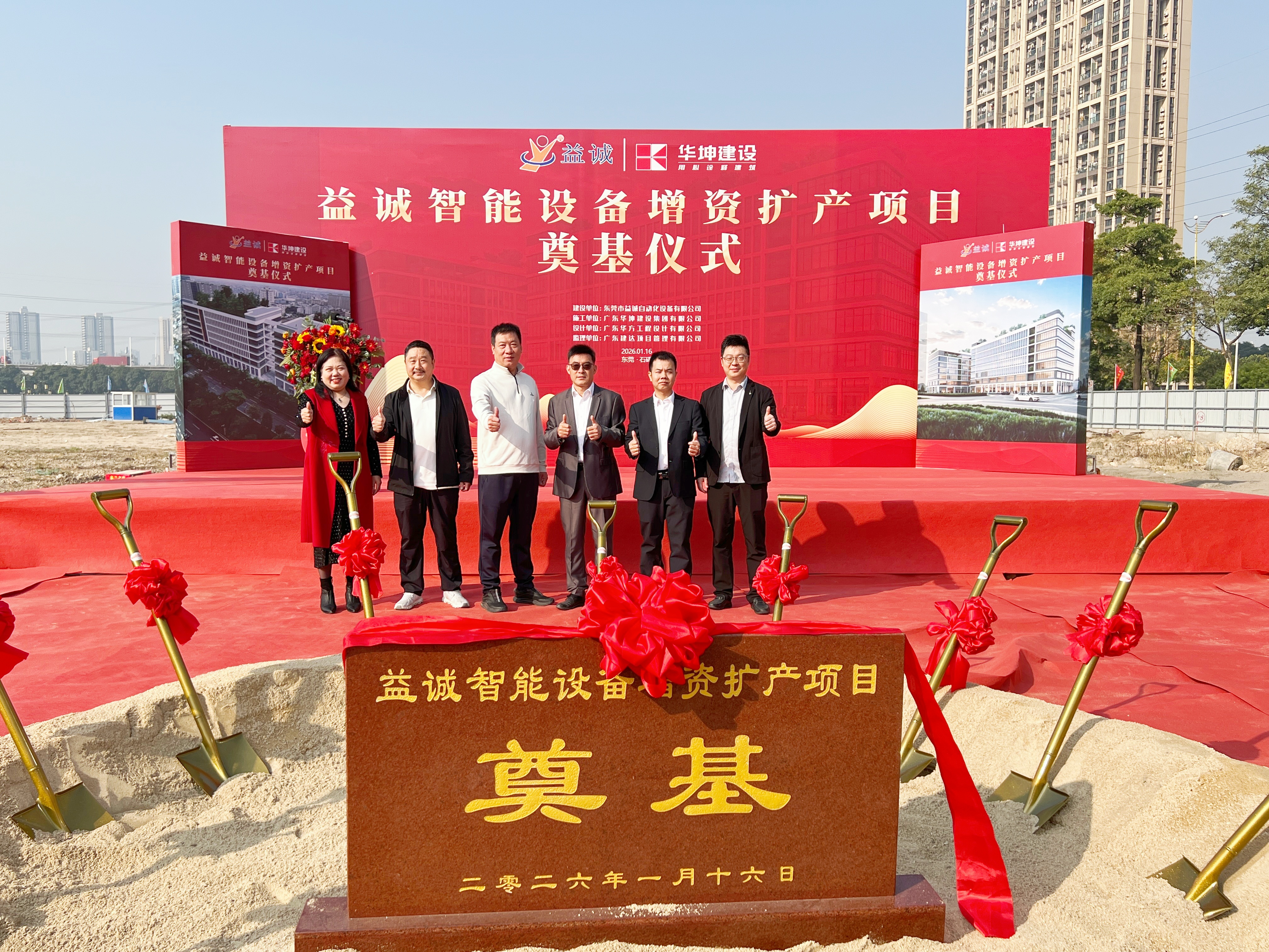 2026年1月16日,艷陽高照,晴空萬里。在這充滿希望與激情的季節(jié),益誠智能設(shè)備增資擴(kuò)產(chǎn)項目奠基儀式隆重舉行。益誠自動化董事長袁董、總經(jīng)理潘總攜眾高管與本項目的設(shè)計方、施工方、監(jiān)理方等參建單位代表齊聚一堂,共同見證這一具有里程碑意義的盛典,現(xiàn)場氣氛熱烈非凡。